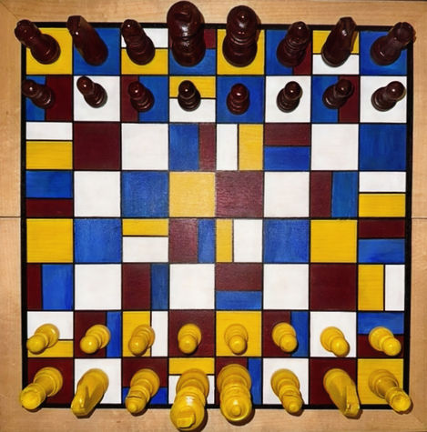 The assignment challenged us to design any object of our choosing, integrating Mondrian’s signature aesthetic into its design. This involved thoughtful application of his principles, including the use of a grid structure, the interplay of positive and negative space, and a balance of asymmetry and proportion. My final piece was a chess board transformed through paint.